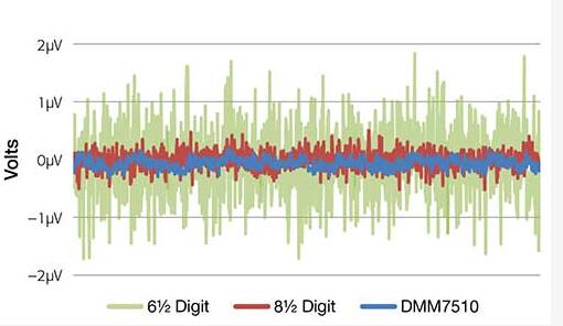 高靈敏度可讓 DMM7510 測量低的電壓、電流和電阻,并檢測微小變化和信號漂移。
